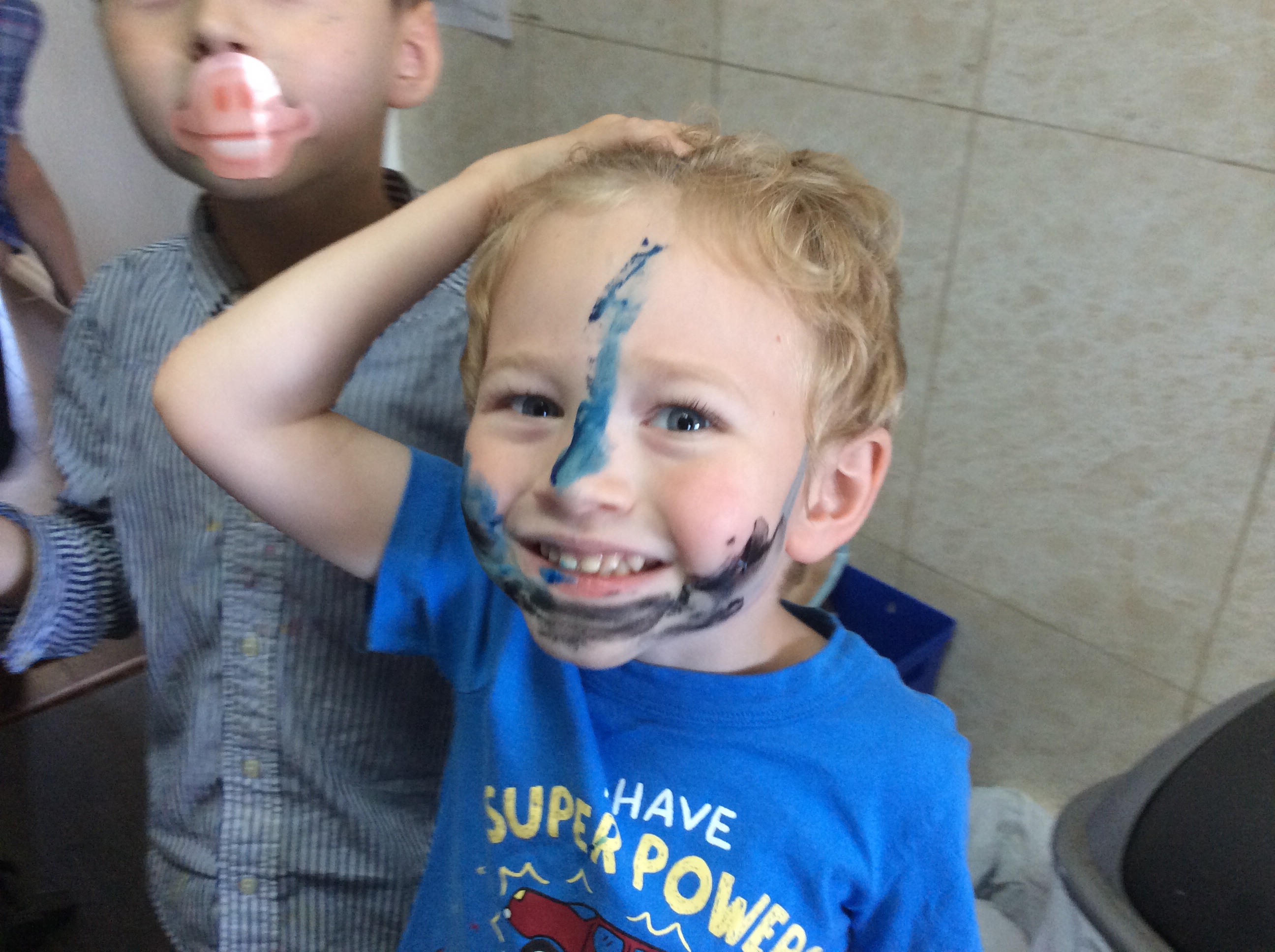 …and discovering that my toddler had painted the table with Nutella while I was at dress rehearsal. He later repeated said visual art performance with yogurt.