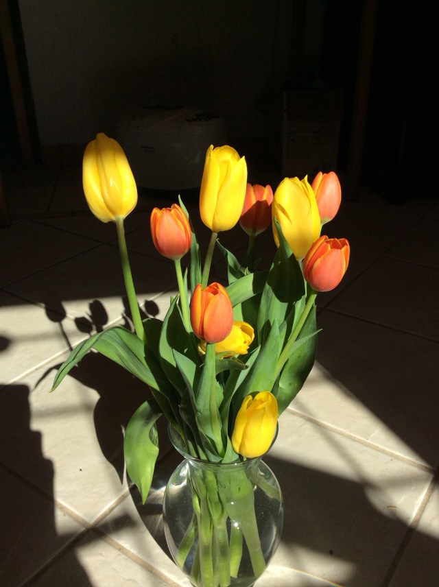 Recently my dear friend Natalie from Chicago came for a quick visit, as she was back home for her grandmother’s funeral. Her presence was like a sweet breeze from the Windy City. She brought a little pot of cheerful daffodils to brighten my table. I got florally spoiled! It was a gift to be able to see her, and have a heart-to-heart talk while the kids played at the park. A moment of happiness I will cherish for a long time.