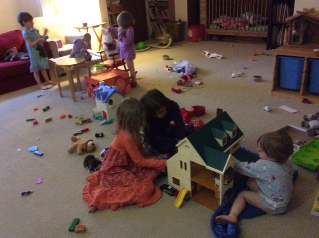 Nor do the kids get easily bored. They are quite happy to turn the living room into a giant block tower and Duplo city while I get the dishes done. Or to build endless forts with blankets and upturned furniture. Of course all this teamwork means there is also an organized team effort to drive me crazy, but happily I’ve already been crazy for a long time! Comes with the territory! 😉